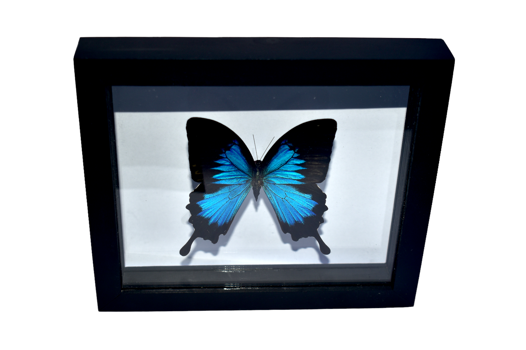 La mariposa Ulysses, nativa de Australia, Indonesia, Papúa Nueva Guinea y las Islas Salomón, es una de las especies más impresionantes debido a sus brillantes alas de color azul iridiscente que pueden alcanzar hasta 14 cm de envergadura. El color azul se debe a la estructura microscópica de las alas que reflejan la luz.